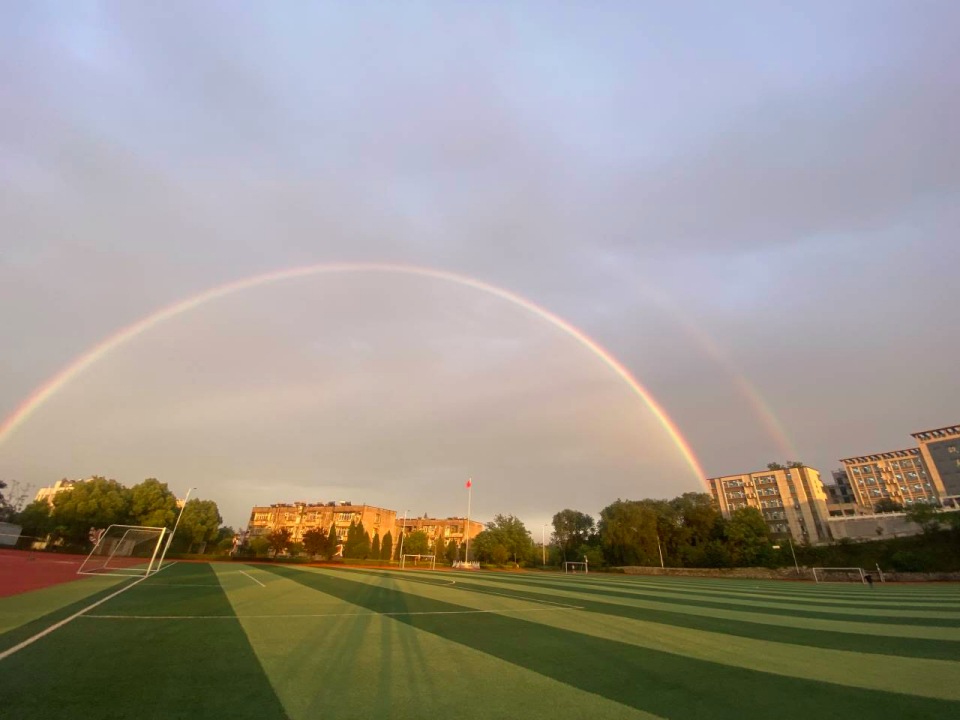 雨后彩虹下的校园