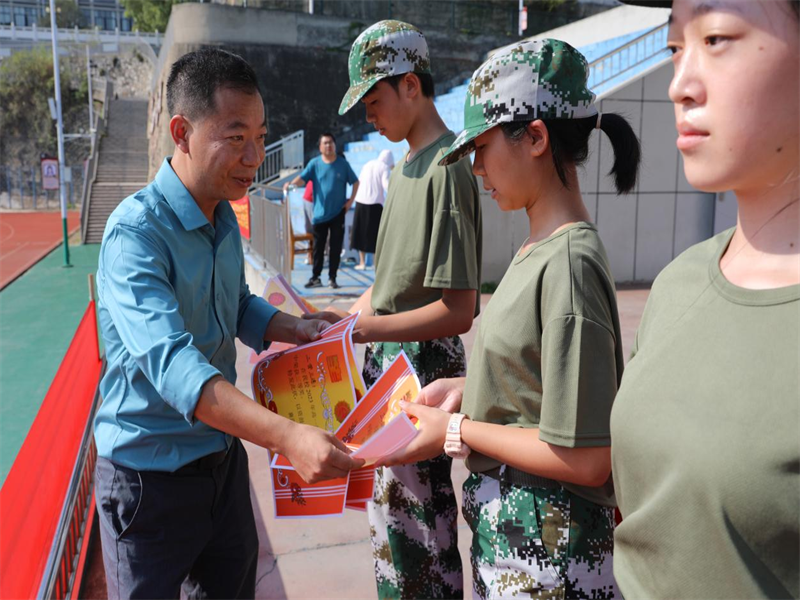 2023年8月30日上午,我校在运动场开展2023级高一新生军训汇报表演,高一全体新生参与。出席此次汇报表演的领导有校党委书记李光成,空军95382部队领导王佳,校党委委员、副校长熊卫国,校党委委员、副校长安良海,校党委委员、副校长吴焱红,校党委委员、纪委书记李园、高一年级主任叶正斗。汇报表演由高一年级副主任季辉主持。